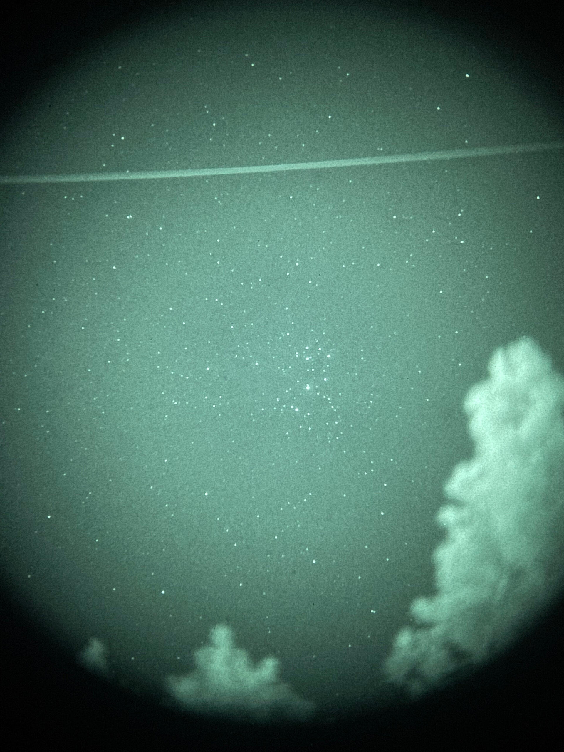 Despite a generous scratch located on the image intensifier, it put up a fantastic image of the night sky nonetheless.To my delight, this unit was purchased during the Leonids meteor shower.
