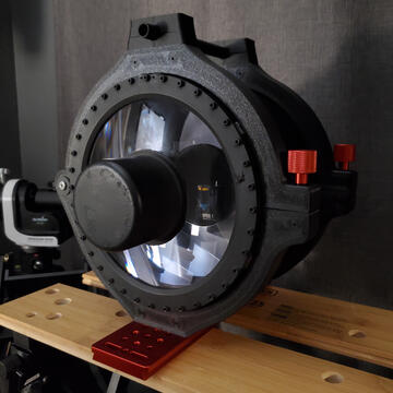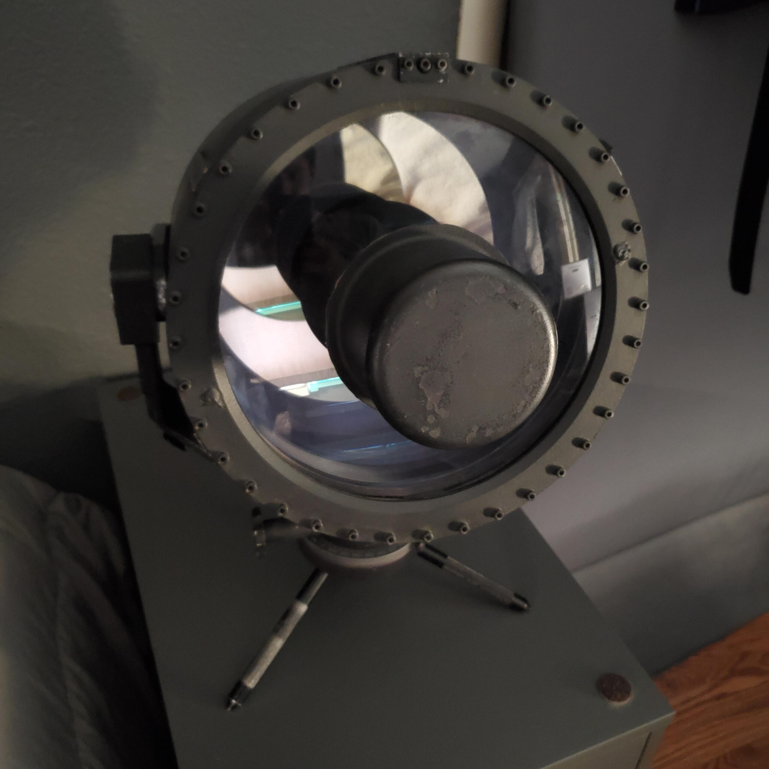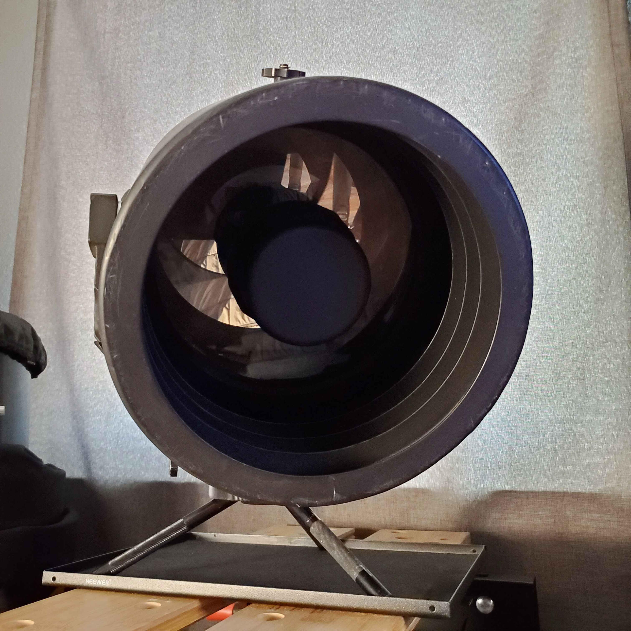 During the Fall of 2023, I purchased a 203mm F/1.6 Schmidt-Cassegrain lens from Ebay for around $250 USD. At the time, it was advertised as the largest and fastest lens to use on a PVS-4 or TVS-5 device. I was determined to use it purely for night vision astronomy.Arriving in a very large box surrounded by various foam pieces, I mounted it on a mini-tripod that the same seller also recommended (please get it if you do).It was rather large and in rough shape, but the glass and mirror itself was still in working condition.