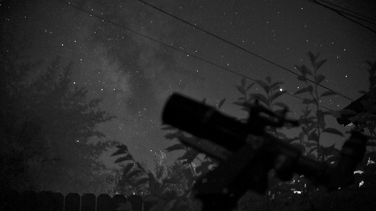 Slowly drifting across the band of the Milky Way in B&W footage to boost contrast.A 685nm filter is tapped to the most rear objective of my large MK-37 Mod 3 cassegrain lens, a poor man's way of using filters on such an old device.